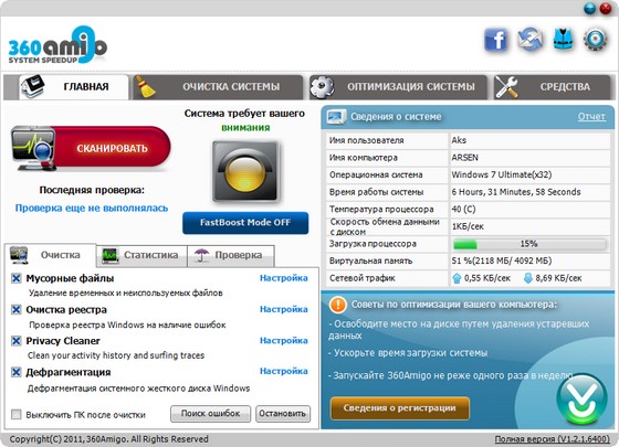 Разработчик: 360amigo.com