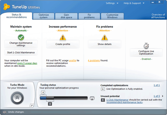 Перед вами финальная версия программы TuneUp Utilities 2011, цель которой оптимизировать вашу систему, чтобы работала она быстрее, грузилась лучше, в общем все как всегда. Программа имеет огромную популярность, оно и понятно, ведь инструментов так много, внешний вид прекрасен, а работает она отлично.