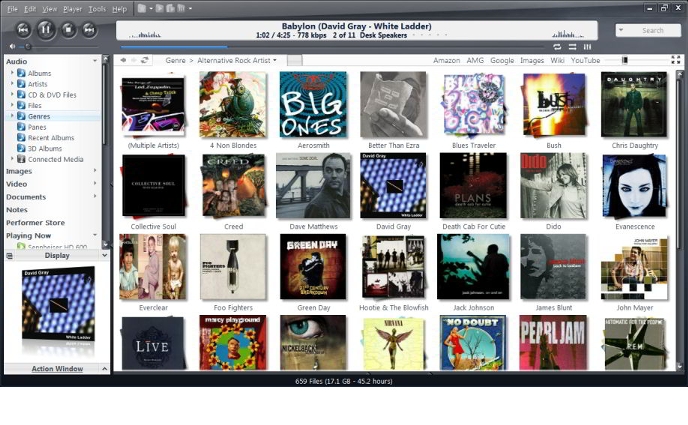J.River Media Center - мощный мультимедийный центр, объединяющий в себе работу с музыкой, видео и фотографиями. Проигрывает большинство популярных аудио и видео форматов, включая MP3, аудио CD (поддерживает CDDB) и DVD, может преобразовывать CD-аудиотреки в WAV и MP3, переписывать на жесткий диск виниловые диски и кассеты (убирая при этом помехи и шумы), а также создавать аудио-CD, причем для всех этих функций программа имеет множество настраиваемых параметров.